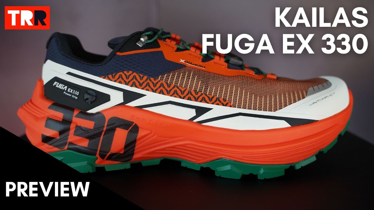 The Kailas Fuga Ex 330 is a cushioned trail running shoe with Vibram Megagrip, Supercritical Foam, and AWS 3.0 lace system designed for ultra-distance mixed terrain.