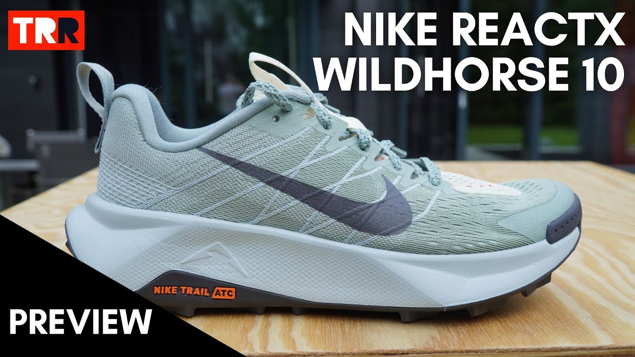 The Nike Wildhorse 10 is a responsive trail running shoe with ReactX foam, ATC grip, and protective mesh designed for trail running on varied terrain.